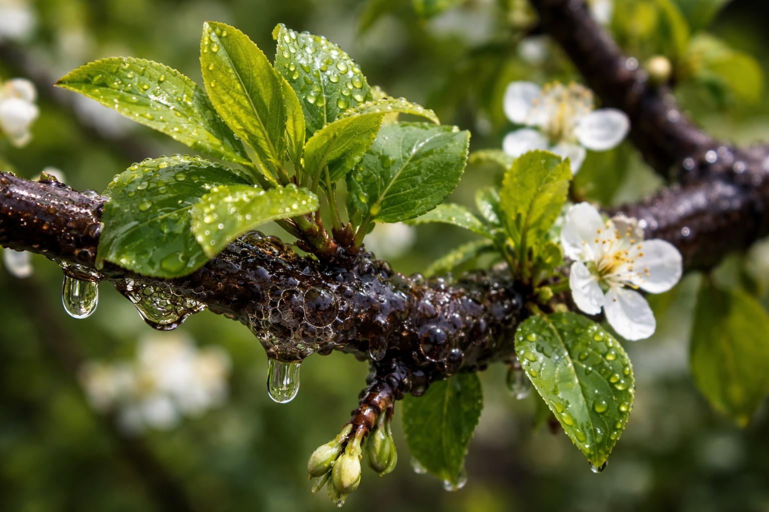 Dacă plouă abundent la scurt timp după pulverizare, tratamentul va trebui repetat imediat pentru a reface bariera de protecție de pe coroană.