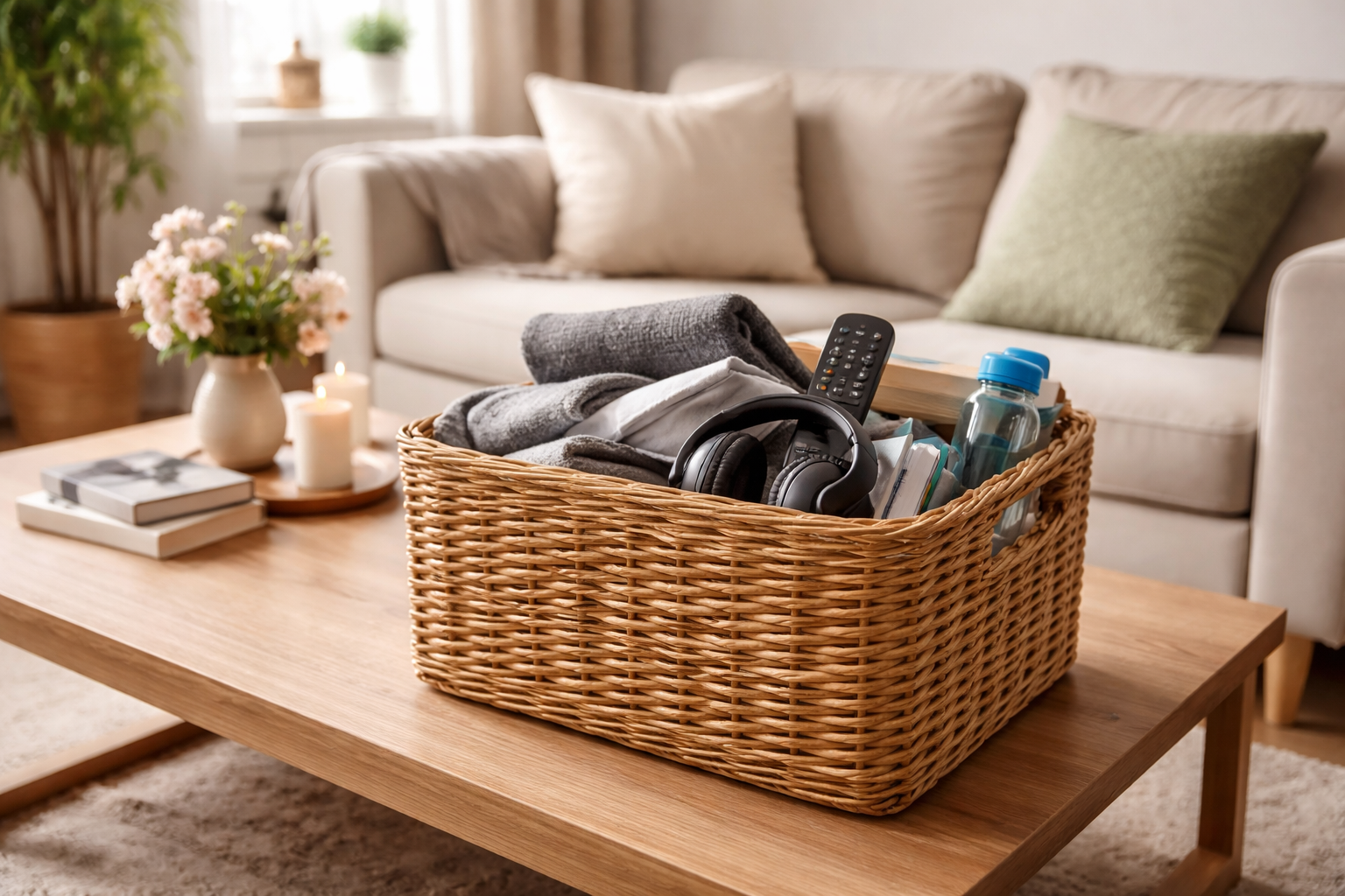 Principalul secret al curățeniei rapide este să vă reduceți la minimum mișcarea prin camere. Puneți toate obiectele împrăștiate într-un coș de gunoi spațios pentru a fi sortate ulterior și veți elimina instantaneu haosul vizual.