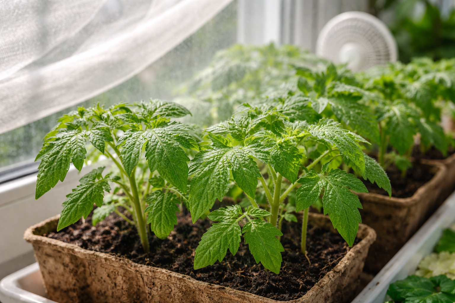 Crearea la timp a unui microclimat confortabil și răcoros redă tomatelor vitalitatea și aspectul sănătos. Plantele se adaptează rapid la noile condiții blânde și continuă să dezvolte un sistem radicular puternic pentru o viitoare plantare sigură în sol deschis.
