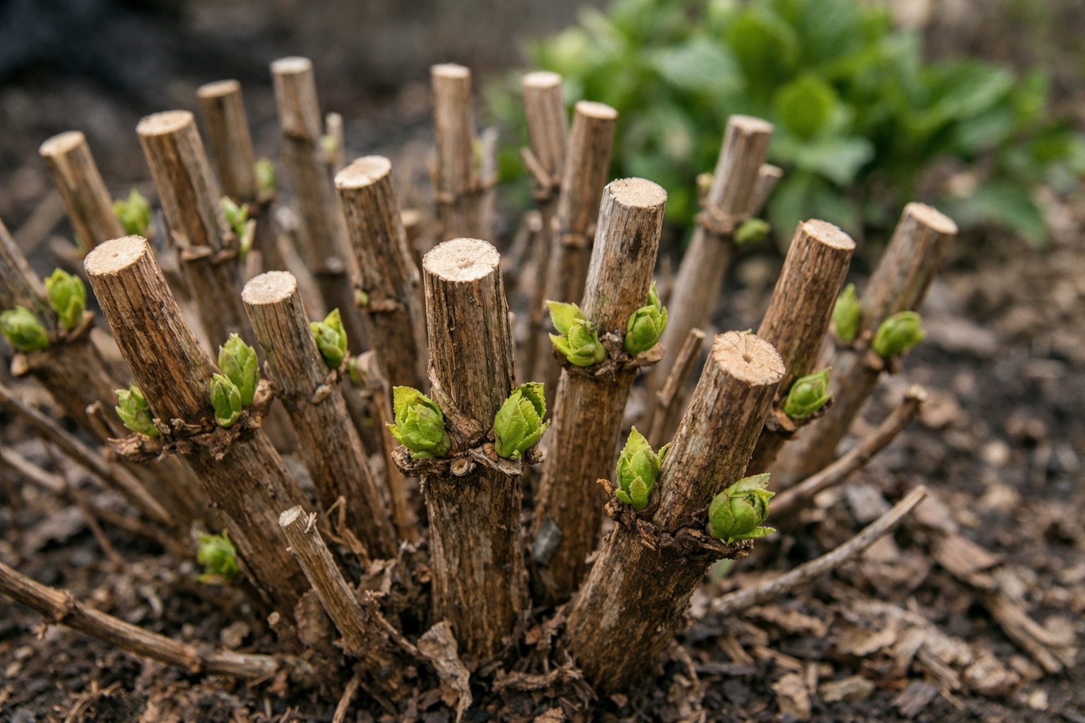 Scurtarea ramurilor de anul trecut stimulează trezirea celor mai puternici și mai sănătoși muguri inferiori.