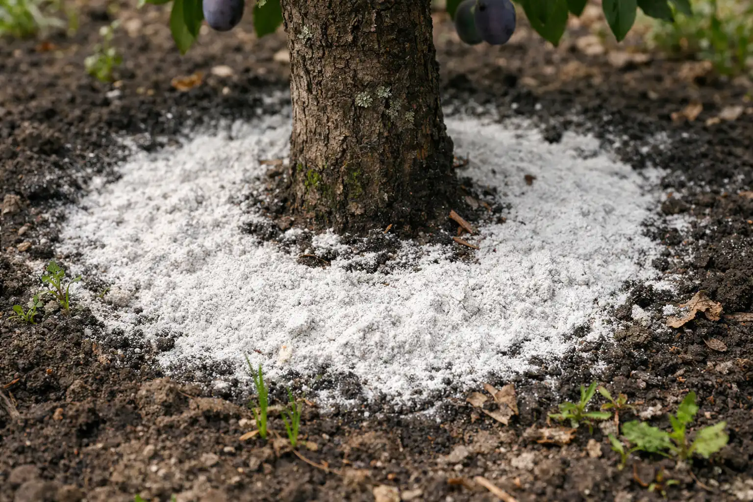 – Întindeți produsul uniform pe întreaga zonă de proiecție a coroanei pomului.