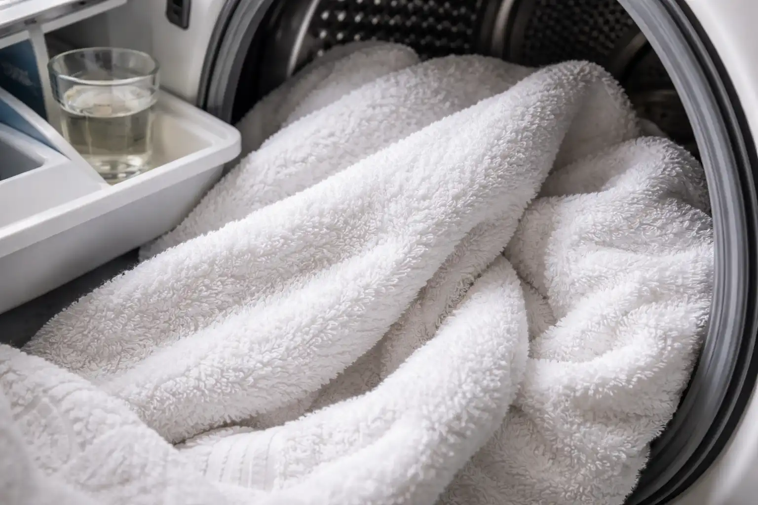 Principalii inamici ai scametei se ascund chiar în baia ta. În încercarea de a face lucrurile mai moi și mai parfumate, facem greșeala de a adăuga balsam de rufe. Combinat cu excesul de praf de spălat aceasta se acumulează treptat în fibrele țesăturii. Componentele chimice creează o peliculă impermeabilă invizibilă care blochează capacitatea bumbacului de a absorbi lichide.
