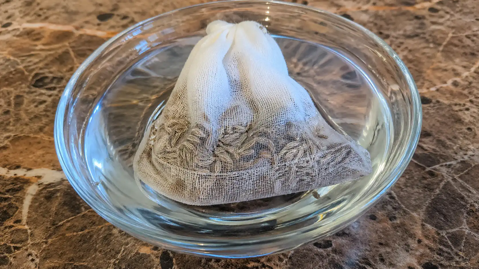 Înmuiați punga în apă fierbinte timp de aproximativ cincisprezece minute.