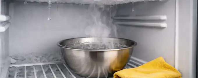Cea mai sigură și rapidă metodă de a dezgheța frigiderul fără a deteriora sistemul de răcire constă în utilizarea transferului termic prin abur și apă