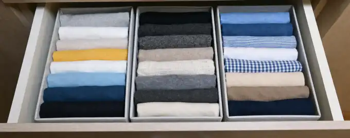 Soluția eficientă pentru eliminarea haosului din dulapuri constă în trecerea de la stivuirea orizontală la depozitarea verticală și utilizarea organizatoarelor